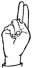 На ћирилици написано ВАЛЕНТИНА МИЛИНОВИЋ састоји се из 18 слова [?]. Исписано ћириличном једноручном азбуком за глувонеме: